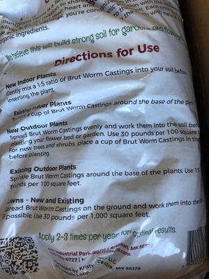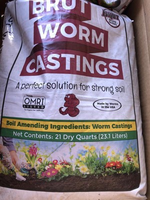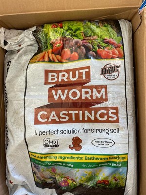 Brut Worm Farms All Natural Organic Worm Castings Fertilizer Soil Builder Potting Mix for Indoor & Outdoor Plants, Lawn, & Garden, 30 LB Bag (8 Pack)