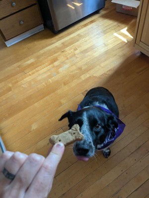 My dogs usually don’t get too many dog biscuits, as they have tiny and/or few teeth, making such treats too hard and crunchy to chewy. I was gifted a bag of these treats and decided to try them, as I loved the wholesome ingredients; they are more nutritious and healthy than most human food! Whole grains and real meat are the main ingredients, and the added vitamins, minerals, and glucosamine and chondroitin help keep my pups spry and their coats shiny. These biscuits were actually really easy to break into pieces and chew, so they are perfect for any breed and age. And, my dogs loved the taste!