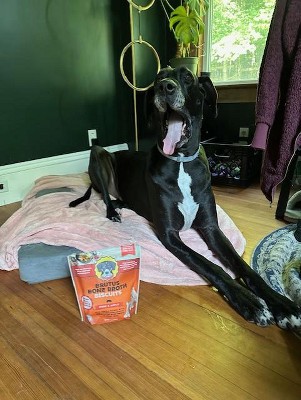 My pups, all 3, love these crunchy bones! Low fat and apparently delicious flavor! Paired with the Brutus Broth goat milk, it turns into a delicious nutritious snack for my senior dogs especially!