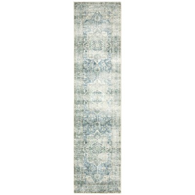 The Bryant collection is power-loomed in the US of tri-colored and textured polypropylene yarn. It features a range of designs from traditional Persian to soft modern in beautifully updated, yet classic colors of deep navy, cool soft blue, moss green, garnet red and neutrals with a bit of shine, hinting at shades of metallic gold and silver. The multi-colored yarns add depth and visual interest to the designs and the textured effect creates a very soft hand.