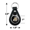 - QUALITY MATERIAL: Our durable round keychain is crafted from leather with a glossy resin-topped emblem featured design shown on one side. Approximately 1.5" (3.8cm) x 2.5" (6.4cm) in overall size, emblem is 1" (2.5cm)..