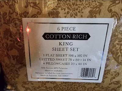Luxuriously soft and durable damask six-piece sheet set. Fits mattresses up to 17" deep Cotton sateen/polyester Machine wash Full sheet set includes:One81" W x 96" L flat sheetOne 54" W x 75" L fitted sheet with a 17" deep pocketFour 20" W x 30" L standard pillowcases.