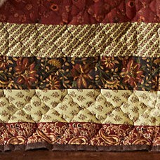 A charming patchwork center is bordered by wide, floral printed stripes on this cozy, oversized bedspread featuring a solid reverse for instant versatility..