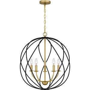 The Bryn oversized pendant features alluring open framework that casts enchanting shadows. Use it alone in an entryway or in a grouping to illuminate a kitchen island. Whether in aged brass or antique nickel, Bryn spotlights black accents for an unapologetically pretty design.