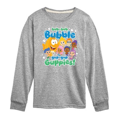 Bubble Guppies - Bub Bub Bubble Gup Gup Guppies - Toddler And Youth Short Sleeve Graphic T-Shirt - Dive into exciting undersea adventures with Bubble Guppies graphic apparel! Featuring colorful designs of beloved characters like Molly, Gil, Goby, Deema, and Bubble Puppy, each piece captures the fun, music, and educational magic of Bubbletucky. Perfect for young fans and playful wardrobes, this collection brings the show's upbeat spirit, catchy songs, and vibrant underwater world to life in every wear.