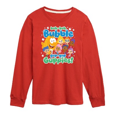 Bubble Guppies - Mr. Grouper And Guppies - Toddler And Youth Long Sleeve Graphic T-Shirt - Dive into exciting undersea adventures with Bubble Guppies graphic apparel! Featuring colorful designs of beloved characters like Molly, Gil, Goby, Deema, and Bubble Puppy, each piece captures the fun, music, and educational magic of Bubbletucky. Perfect for young fans and playful wardrobes, this collection brings the show's upbeat spirit, catchy songs, and vibrant underwater world to life in every wear.