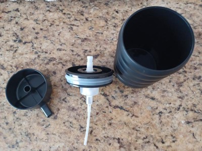 A: It doesn’t unscrew. There’s a lid with a silicone gasket and you have to wiggle the top back and forth a bit to see where it comes off