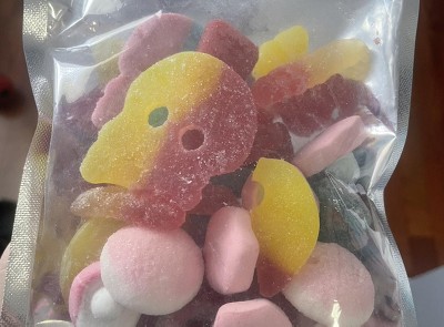 Candy is cut or bites have been taken out of them. Very nasty. Candy is also not as pictured at all. I got one candy pictured and it's the nastiest flavor.