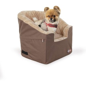 This portable pet booster seat provides your small pet with a safe and comfortable spot for a scenic lookout while you drive. The firm foam bolster keeps your pet secure, and the seat easily fastens with any car seat belt, plus includes adjustable tethers for extra safety. Its removable, washable quilted fleece cover ensures comfort and easy cleaning, while the collapsible design makes for convenient storage. Quick to install and uninstall, this booster seat is perfect for short trips or longer journeys, with a low front for easy pet access. Ideal for small pets, will fit securely in any car seat.
