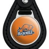 - QUALITY MATERIAL: Our durable round keychain is crafted from leather with a glossy resin-topped emblem featured design shown on one side. Approximately 1.5" (3.8cm) x 2.5" (6.4cm) in overall size, emblem is 1" (2.5cm)..