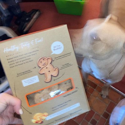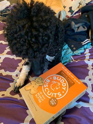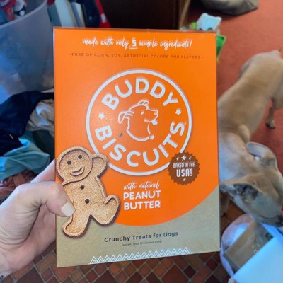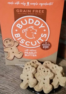 Buddy Biscuits Grain Free Orange Box Peanut Butter 14oz This is a grain free 14 oz box peanut butter flavor dog treat. These oven baked dog biscuits are made with a natural peanut butter. No added gluten, soy, yeast, sugar, and no additives. Great for all dogs including puppies and adult dogs as well. Obviously my dog loves these as well. Any treats whether they’re hard or soft he loves them all.
