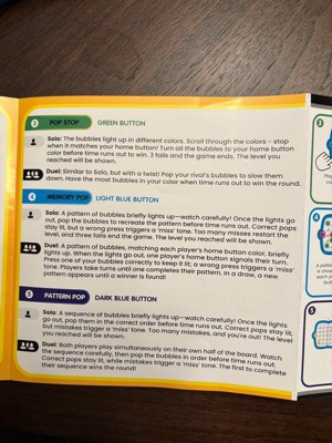 [This review was collected as part of a promotion.] Pop it game is really fun, simple to play, and great for all ages. The light-up color bubbles make the game exciting. It keeps my kids entertained. Bright and durable game for 1-2 players.