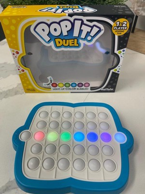 Get ready for fast-paced bubble-popping action with Pop It! Duel, the ultimate interactive fidget game designed for both solo play and 2-player challenges! With six unique game modes, players can test their speed, memory, and reflexes in a fun, light-up experience. Whether you’re competing against a friend or playing solo, this game offers non-stop entertainment for kids and adults alike. Select from Pop It Duel, Speed Pop, Pop Stop, Memory Pop, Pattern Pop, or Pop or Not! Simply press the color-coded bubbles to choose your challenge and start playing. Enjoy self-paced challenges in Solo mode, or turn up the excitement in Duel mode, where you’ll go head-to-head in battle. The built-in light-up scoreboard keeps track of your score, advancing each round until one player comes out on top. Pop It! Duel is simple to learn yet keeps players engaged for hours! The bubble-popping mechanics make it a great choice for all ages, whether you're playing at home, on road trips, or during family game nights. Looking for a unique, engaging, and stress-relieving toy? This multicolor light-up fidget game makes a perfect gift for kids, teens, and adults who love interactive games. Its compact and travel-friendly design makes it ideal for on-the-go fun. Grab Pop It! Duel today, and get ready to start popping!