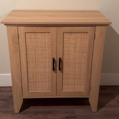 Buffet Cabinet, Rattan Sideboard, Small Storage Cabinet with Door and Shelf, Natural Wood Accent Cabinet for Living Room, Dining Room, Hallway