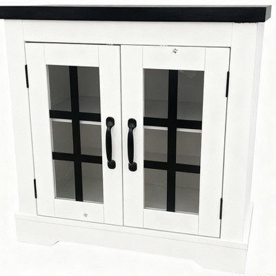 Buffet Cabinet with Storage, Sideboard Buffet with Glass Doors, Built-in Power Outlet, for Kitchen, Coffee Bar, Pantry, Living Room