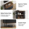 - Modern Boho Style: Roller shutter sideboard features an oval natural grain panel, sliding roller shutter doors and rustic black handles. It makes efficient use of built-in storage space, ensuring that the stored items are not exposed. Use it as a coffee table or wine table, whether placed in the living room, foyer or office, the arched groove cabinet will add charm to your home