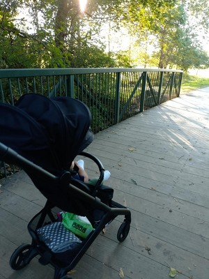 Overall this bumper bar did exactly what I expect a bumper bar to do-- it gave my son something to hold onto while we were strolling so he felt more secure. As a fun bonus, it also allowed him to feel like he was partially in control, or at least it seemed like he was pretending he was driving a car with the noises he made while we "zoomed" about. Getting it installed was a bit of an adventure at first, but it still took less than 5 minutes to figure it out (or at least I think I figured it out). My son is able to jiggle the bar up and down a bit, but he is not able to open it or get out. I actually have found that I like that the bar moves a bit up and down as it makes it easier to get it out of the way when folding up the stroller- although more often than not I still just remove it and toss it in the storage basket while I have the stroller folded. It feels super sturdy and durable, but I am sure time will really tell the story there. My son definitely prefers to stroll with the bumper bar than without it though, so I consider it a must-have accessory for now. Thanks to the Stellar Product Testing Panel for sending this my way in exchange for my honest feedback!