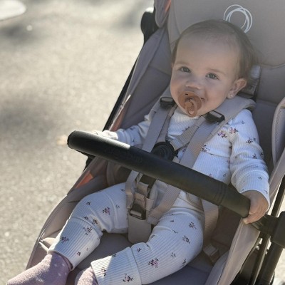 The stroller itself is functional, but I think the bumper bar is my favorite part. We recently traveled with our toddler, and this specific attachment was great in the airport. It was such a smooth transition to get her out for security and bathroom breaks, and I love that the stroller folds with it. She also loves to hang on to it while sitting up! Overall I love the attachment, its ease of use, and quality. I was fortunate to receive this product through the Stellar product testing panel, and I feel that it really completed our stroller set up.