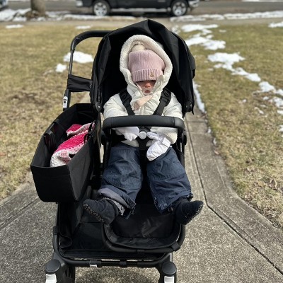Right off the bat, you can tell this is a premium quality stroller in the way it handles. It is very easy to maneuver, one-handed, and pushes very evenly despite my very heavy 17 month old being in the sole seat as I have it configured. I wish I had this early on right after my baby was born- the ability to have a bassinet and a toddler seat side by side would have been so convenient! I love how you can customize based on what stage of life you’re at. A couple small things that I’ve noticed as slight “cons”, but for others might be a moot point. The four point harness. Having to click in four straps takes just an extra second. In other strollers I’ve used, the shoulder and belt harness straps are attached, so it’s just two pieces to click in. However, on the flipside, this makes getting kiddo out of the seat a lot easier because you press the button once and you can get them out without having to make sure their arm isn’t stuck! Attaching the lower basket and the seat. It was relatively easy until I needed to do the Velcro straps. I felt like I couldn’t get a good fit to make everything sit nice and flush. So even now after it’s been used and broken in, it still looks like it’s not totally positioned correctly on the frame. The adjustment plastic buckle for the handlebar is placed exactly where I would put my hand using it one-handed. A good sign that I’m able to use just one hand to maneuver, but slightly uncomfortable and inconvenient. I knew going in that this was a big stroller and I do have plenty of room, but it is very big. Very. Even collapsed. It still takes up a good amount of space in the back of my VW Atlas. The seat size and spaciousness is slightly small for my very big kids. My 33 inch 31 pound 17 month old was pretty snug, especially with the depth of the seat. The storage is unmatched. The basket on the side can fit so much stuff. The zipper closure even allows you to stuff it super full and overflow, and it keeps it nice and secure. The tires hold up nicely in light snow, mud and water. I love the overall aesthetic of this stroller. I would recommend this stroller for a family who might be doing a lot of “city living”- maybe needing a lot of storage for taking groceries from the store to home, or using it as your carriage inside stores- so you don’t have to take baby out and put into a cart. It definitely is comparable size-wise to a double stroller, so if you’re used to that/looking for that, the size and handling is spot on. I received this product as part of the Stellar Product Testing Panel.