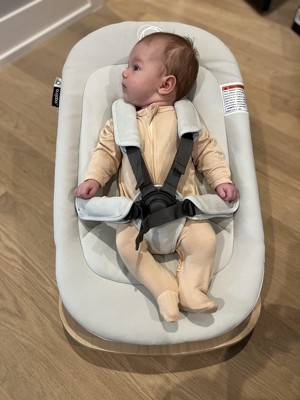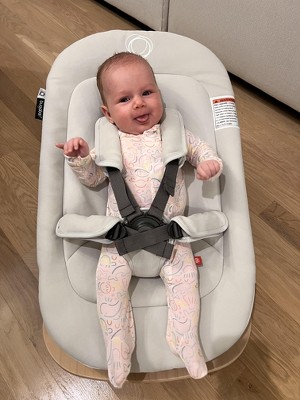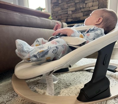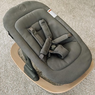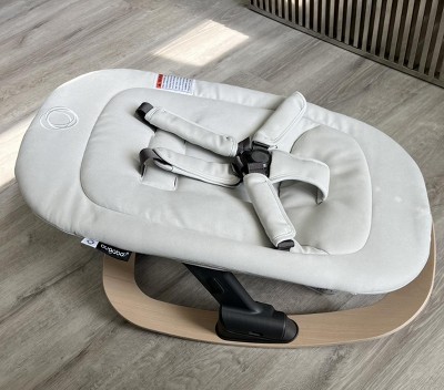 The Bugaboo Giraffe baby rocker is a wonderful standalone rocker that extends its functionality as an add-on to the Giraffe highchair. The main body of the rocker is a soft, machine washable fabric that reminds me of a mix between microfiber and alcantara. Right out of the box it didn’t have an off-gassing smell, which I really appreciated. There is also plenty of removable padding around the 5-point harness. The rocker base is a beautiful natural beechwood with two strips of grip on either side of the bottom. At the back of the base is a kick stand to keep the rocker stable when needed and neatly tucks away when not in use. The suggested weight range is typical for a rocker: newborn through 26.5 lbs - 20lbs as a high chair attachment - or until the little one can sit up on his or her own. While this is more of a limited piece of equipment, it does serve as a multifunctional product if you opt to get the Bugaboo Giraffe high chair as well. The rocker can serve as a cozy resting spot for your little one atop of the chair, and allows them to be at a higher elevation to join you at the dinner table - or wherever. Moving the rocker from the base to the high chair is quite seamless and simple, with just two buttons on either side of the rocker that you press to release. An indicator spot near the release buttons lets you know if the rocker is secure, showing green once it’s snapped in correctly, and red if it isn’t. My only complaint is that I had a bit of a time stretching the fabric completely over the frame and getting it to snap. The setup was easy apart from that (and probably completely easy for anybody with a bit more muscle!). Overall I recommend the Giraffe rocker if you value versatile and good looking baby gear. A bonus is that it is fairly priced to other comparable brands, and can be obtained as a bundle with other Giraffe items for a discount. A shout out to the Stellar Product Testing Panel for supplying me with this lovely rocker!