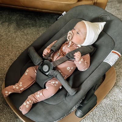 Designed with ergonomic experts, the Bugaboo Giraffe baby rocker supports your newborn during early development. The natural rocking motion keeps them content and comfortable, and the five-point safety harness gives you peace of mind. You can let your newborn relax in the rocker until they can stand up on their own (around 12 months old), or reach 26.5 lbs — whichever comes first.