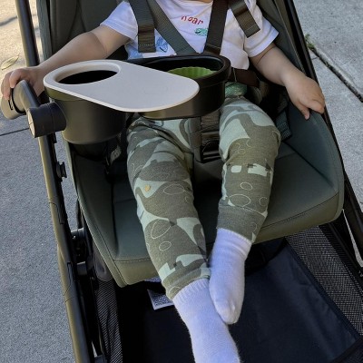 Keep hungry toddlers happy on the go with the Bugaboo tray. It clips on to securely store food and drinks. With a simple slide-open lid, the snack compartment is dishwasher-safe for easy cleanup. You can keep the tray on to fold your stroller too.