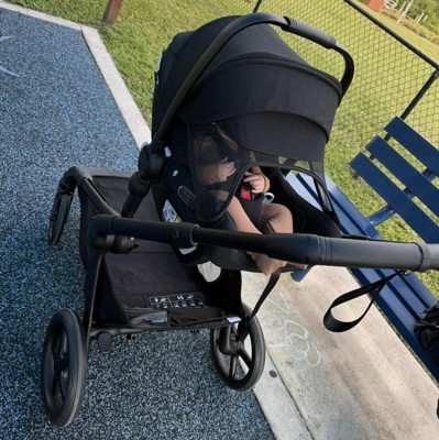 - Sun canopy with UPF 50+ protection and a peek-a-boo window