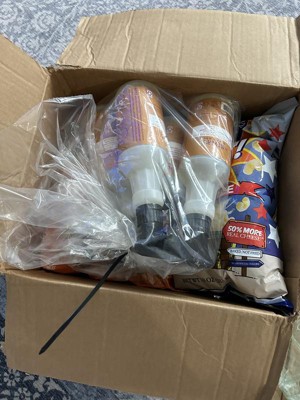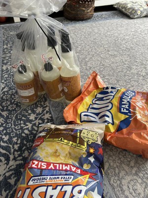 My order arrived all in one box with four heavy bottles of cleaners and soap on top of the bags of Bugels and Pirate's Booty. What employee has been trained that this is an okay way to pack and ship?! The snacks were crushed. DO BETTER TARGET!!!