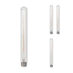 Included in this package are four, T9 LED bulbs. Each bulb is 5 watts, is in a soft white 3000K color temperature, and has a standard E26 screw base. These bulbs are long lasting and fully dimmable. Length of this bulb is 11". The soft, white 3000-Kelvin light invites your guests into your space without being too dim or too harsh. The clear finish that lets you feature your bulbs prominently in your fixtures. STYLE MEETS FUNCTION: The contemporary tubular shape of these bulbs offers a beautiful form and symmetry to your fixture. These bulbs are a great way to restyle your existing traditional lighting fixture and create a more modern look and feel. These bulbs are ideal in chandeliers, sconces, pendants and any light where the exposed bulb is able to be admired. Compatible with medium screw base fixtures size E26. Fully dimmable bulbs cast the perfect amount of light in any room. These 5 watt bulbs are designed to replace a traditional 40 watt incandescent bulb while lasting longer. Each bulb is estimated to last 15,000 hours before they need to be replaced. That means fewer burnouts and replacement bulb purchases. Because these bulbs are LED, they are guaranteed to work with your existing dimmer technology. Dimmable LED technology also means you can dim these bulbs without compromising their performance. Cast the perfect amount of light in your home.