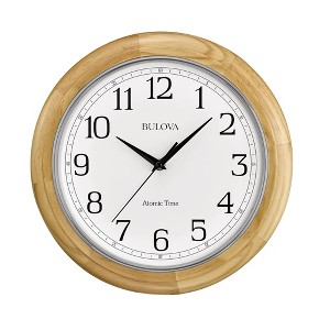 Bulova Clocks Atomic Time Analog Quartz Wall Clock, Warm Brown Cherry