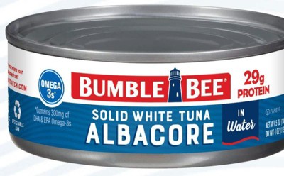 This can of Bumble Bee Solid White Tuna in Water is a quick and easy go-to for a variety of different snacks and meals. It's full of premium solid white albacore tuna in water for a full and rich taste. Simply drain the water from this gluten-free tuna and use it to create wraps, sandwiches, casseroles and any other unique creation you can whip up in your kitchen!