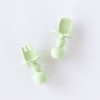 Bumkins Chewtensils® are intended for Stage 1 of baby-led weaning—for babies beginning to practice feeding themselves by holding utensils. The food-safe silicone is safe for teething babies. The fork and spoon are made from soft, textured silicone that’s easy to grip and gentle on tender gums, with bendable heads for safety. The back of the spoon head has sensory bumps to stimulate gums. Weighted, textured handles allow little ones to hold while they begin to practice eating by themselves. Bumkins Chewtensils are best for practicing dipping and scooping, not yet piercing solid foods.
