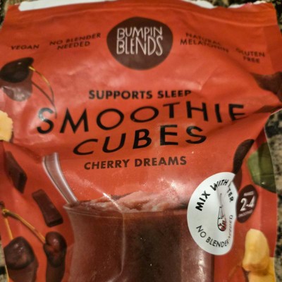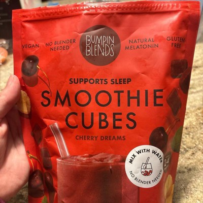 [This review was collected as part of a promotion.] I liked these cherry dreams smoothie cubes. They have a good flavor to them, and also include melatonin, so this is a good drink for the evening to unwind before bed. I prefer to add them to my water as flavored ice cubes. The bag says no blender required, but if you want a traditional smoothie without waiting a while to melt your best bet is to just use a blender with these. I received an incentive to write this review.