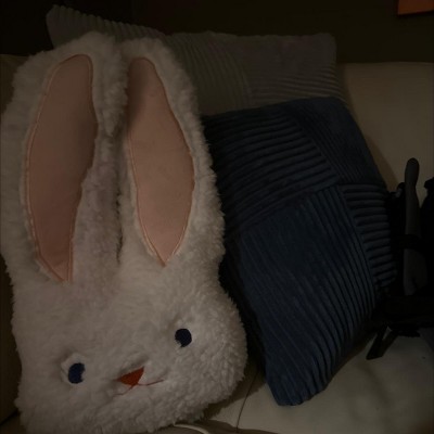 Bring cheerful Easter vibes to your space with this Bunny Pillow. This novelty throw pillow is shaped like a white bunny face, featuring embroidered blue and red details and long projecting ears with pink interiors for a sweet, toy-like 3D look. With its soft, fuzzy exterior and well-filled interior, this decorative pillow looks great whether added to a couch or armchair alongside other accent pillows or displayed solo in a special spot in your home.
