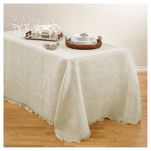 Burlap Tablecloth Ivory (90"x156"): Saro Lifestyle, Fringed Jute, Rectangle, Spot Clean