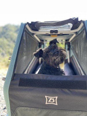 We have two miniature schnauzers and bought the bark ranger and the additional stroller kit. The dogs LOVE their trailer. It is super easy to convert between the bike attachment and the stroller wheels and gives them a safe space to be when we’re out for dinner or anywhere more crowded. Would highly recommend!