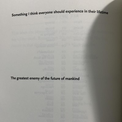 Q: does the notebook has reminders of things that you can write after. for ex. first love: *write*