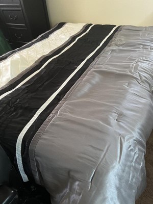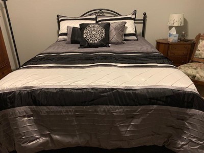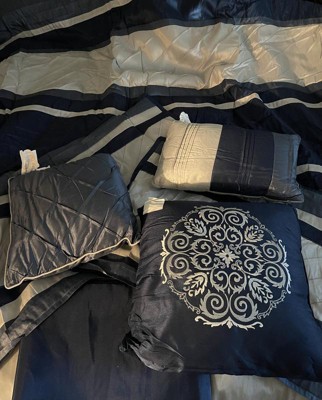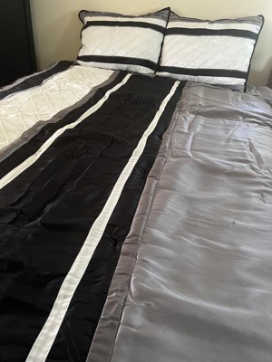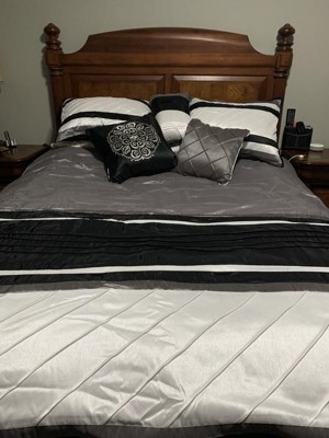 [This review was collected as part of a promotion.] This set is so cozy and welcoming I just love how thick, beautiful, and full the comforter is. It's so perfect for cold winter nights because the material it's made from is a warm yet comfortable fabric and it's not too thick but also thick enough to keep you warm through the night. The designs of everything in this set is just beautiful I love how great the grays, whites, and blacks go together to bring this look together. One of my most favorite things about this set has got to be the accent pillows I not only love how they bring the set together but I also love how they come in different sizes they are fun and great if you randomly need something to cuddle at night like I do. I love how the pillow cases in this set are designed because they are closed on both sides to keep the pillow from falling out the sides. The only bad thing I have found about this set is some of the threads have come up from the comforter after just one night of sleeping with it, but that might just be a one time thing and not actually a design flaw. I would recommend this set to anyone looking to spruce up their bedroom because the design on every piece of this set is fun and would match a number of bedrooms. The colors are great for a neutral room because they are warm and welcoming and really make the bed stand out. The quality and value that this set has to offer is great and I can definitely see myself using this set for years to come.