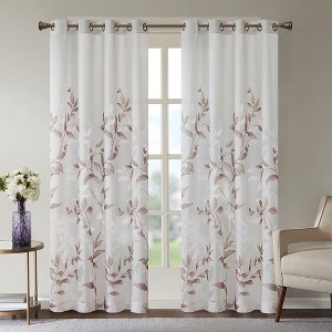 Botanical Print Burnout Design Curtain Panel, Lightweight Sheer Fabric Silver Grommet Top Curtain for All Decor Styles