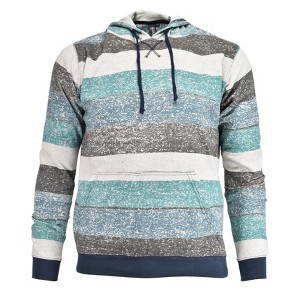 Burnside men's blue Santa Fe ombre stripe Hoodie. Santa Fe striped pullover hoodie with stitched neck detailing. Elastic rib cuffs and hem. Front pouch pocket, zippered hidden safety pocket for your valuables.. Mostly Cotton blend. Tipped Black drawstring. Great 8.2 oz. hoodie for this fall. No layers needed, great stand alone wardrobe addition.
