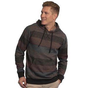 Burnside men's Santa Fe ombre stripe Hoodie. Santa Fe striped pullover hoodie with stitched neck detailing. Elastic rib cuffs and hem. Front pouch pocket, zippered hidden safety pocket for your valuables.. Mostly Cotton blend. Tipped Black drawstring. Great 8.2 oz. hoodie for this fall. No layers needed, great stand alone wardrobe addition.