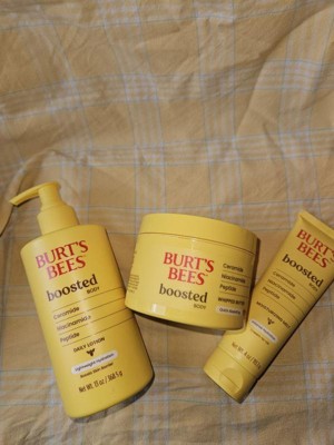 Elevate your skin care routine with Burt's Bees Boosted Body Lotion, a lightweight daily lotion formulated to help boost skin barrier. Packed with powerful ingredients, this body moisturizer is formulated with a ceramides, niacinamides and peptides complex. It locks in moisture, smooths skin and supports natural collagen production. The lightweight lotion absorbs quickly while providing long-lasting skin hydration without greasy residue. It has an energizing scent that is vibrant and tropical with notes of guava and melon, complemented by exotic grapefruit, sheer florals and a smooth blend of amber woods and musk. This Burt's Bees lotion is formulated without parabens, phthalates, petrolatum or SLS, and it's safe for sensitive skin. Burt's Bees is Leaping Bunny Certified (we never test our products on animals). Apply this lotion daily to dry skin during your morning or evening skin care routine for 24-hour hydration. Pair the lotion with other Burt's Bees Boosted Body products. USAGE DIRECTIONS: Apply daily to dry skin during your morning or evening routine. CAUTION STATEMENTS: No warning applicable