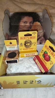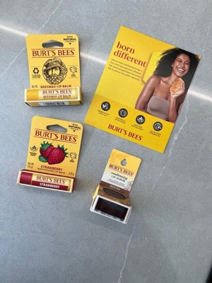 Burt's Bees Strawberry Lip Balm instantly softens and hydrates your lips to help prevent dryness, cracking or chapping. Infused with responsibly sourced beeswax to richly moisturize and soothe lips, the nourishing oils and butters will make your lips juicy, happy and healthy. A matte finish keeps your lips their natural color, while the tint-free tube of lip moisturizer glides on smoothly to pamper dry lips while keeping them protected and hydrated. This lip balm delights the senses with a refreshing strawberry flavor. Formulated without parabens, phthalates, petrolatum or SLS, this flavored lip balm is 100% natural origin to rejuvenate and beautify chapped lips with clean ingredients. You can conveniently tuck a tube of this moisturizing lip balm into your pocket or purse to keep nurturing lip care at your fingertips. USAGE DIRECTIONS: Apply lip balm liberally to your lips as often as needed, particularly in dry, cold or windy conditions. CAUTION STATEMENTS: No warning applicable