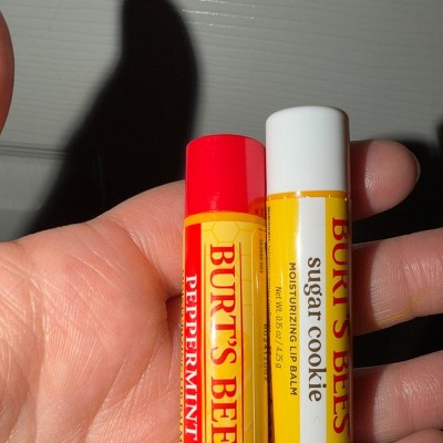 The sugar cookie was disgusting. I’ve tried it four times and it smells good in the stick, but when I put it on it smells like burnt bbq smoke… not quite comprehending that scent but it’s bad. The peppermint is great! It has that tingly feel of the original Burt’s bees when applied, and has a wonderful peppermint scent. I love it. It’s stronger (scent) and thicker (consistency) than the EOS peppermint lip balm.