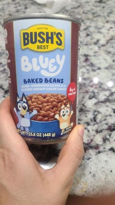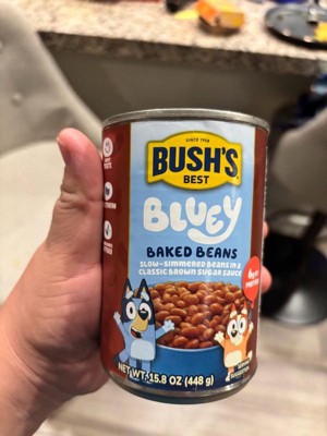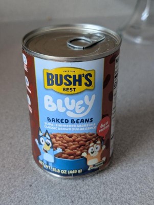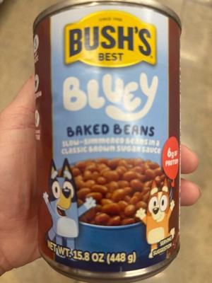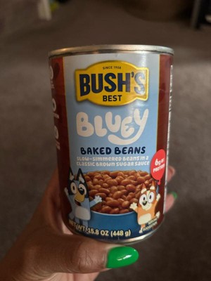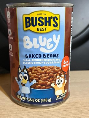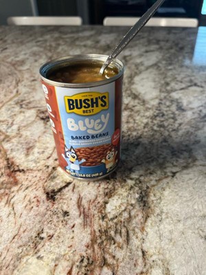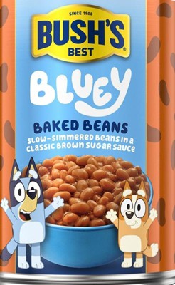 - Stock your pantry with 15.8oz recyclable cans of Bush’s Bluey Baked Beans.