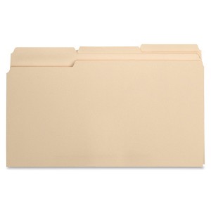 File folders feature 1/3 cut tabs in assorted positions. Tabs are 1/2" high undercut for label visibility. Top corners are rounded. File folders are scored for 3/4" expansion and made of 11 point stock.
