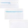 No. 9 invoice envelopes offer double windows for return address and mailing address. Compatible with most standard 8-1/2" x 11" computer-generated invoices and statements. Top window (1-3/16" x 3-1/2") is positioned 3/8" from left and 2" from the bottom of the envelope. Bottom window (1" x 4") is 3/8" from the left and 1/2" from the bottom. Poly windows and inside tint deliver privacy of contents. Self-sealing design makes them quick and easy to close. 24 lb. envelopes require no moisture to seal. Unique double flap design keeps the gum from sticking before use. Simply raise the lower flap and press.