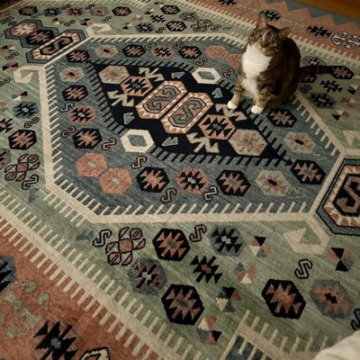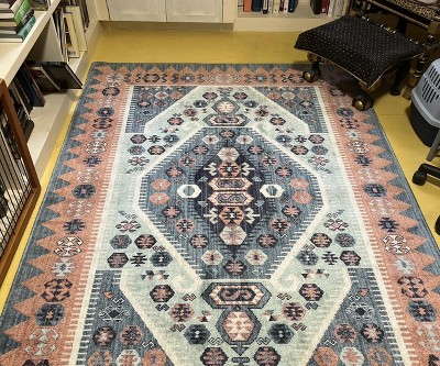 A: This rug adds a global-inspired style, suitable for various decor possibilities.