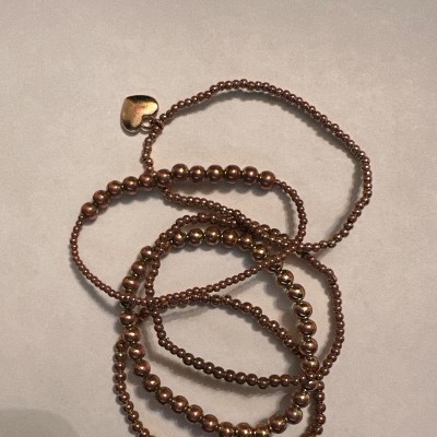 Became discolored after one day of wear. I wore only the circular beaded ones and didn’t wear the butterfly in heart. After just one day there’s a clear difference in the color of the ones I’ve worn, the finishes coming off.