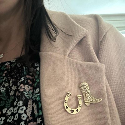 [This review was collected as part of a promotion.] This is a set of four pins that have a sort of country western theme to them. Three of the four pins are clutched back pens with the fourth being your typical pan closure. There’s a cowboy boot with texture throughout a pearl shaped bow, A textured butterfly, and a very fancy horseshoe. These would look great on the brim of any country western hat, or any outfit that you’d like to add a country vibe to. I received an incentive to write this review.